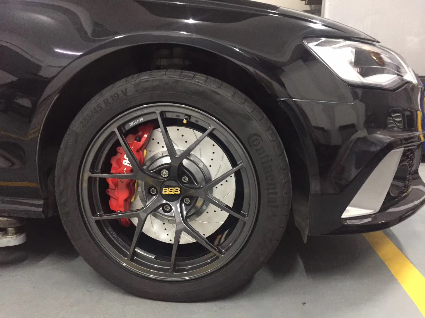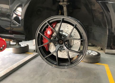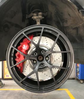 奧迪A6升級(jí)AP8520六活塞剎車(chē)套件,搭配DICASE 380mm孔線高性能剎車(chē)盤(pán),隨時(shí)想剎就剎,輸出強(qiáng)大,性能穩(wěn)定,19寸輪轂即可安裝。