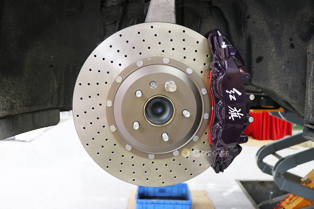 一臺車裝6個卡鉗是什么樣的,前面升級ap9560大六活塞卡鉗,后面是電子手剎所以只能升級雙卡鉗套裝,前輪2個卡鉗+后輪4個卡鉗,正常制動時只有4個卡鉗工作,小卡鉗是駐車用的電子手剎卡鉗。
